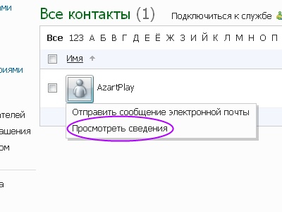 Далее, щелкните по созданному контакту и выберите пункт "Просмотреть сведения".