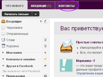 Зайдите в свой почтовый ящик на сервисе http://yahoo.com. Перейдите в раздел "Контакты".